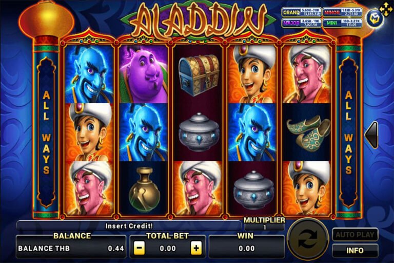 Aladdin เป็นเกมสล็อตวีดีโอที่มาจากการ์ตูนชื่อดังอย่าง Aladdin ที่กลับมาสร้างสีสันผ่านการเล่นสล็อตออนไลน์ พร้อมยกขบวนเหล่าตัวละครที่เราคุ้นเคยกันเป็นอย่างดีกลับมาอีกครั้งในธีมสีน้ำเงินสุดลึกลับ มีกราฟิกและอนิเมชั่นสวยงาม น่าเล่น มาพร้อมกับสัญลักษณ์ของเกม สล็อตที่สำคัญ ๆ ได้แก่ อะลาดิน ตะเกียง ยักษ์จินนี่ พ่อมด หีบสมบัติ ตะเกียง รองเท้า ฯลฯ ซึ่งสัญลักษณ์แต่ละภาพจะมีคะแนนที่ต่างกันออกไป ด้วยวิธีการชนะที่มากถึง 243 ไลน์ Aladdin จึงเป็นเกม สล็อตออนไลน์ที่สร้างรายได้ให้กับนักเสี่ยงโชคมาแล้วจำนวนมาก